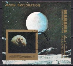 Манама (Аджман) 1972 год. Лунные исследования. Гашеный блок без зубцов