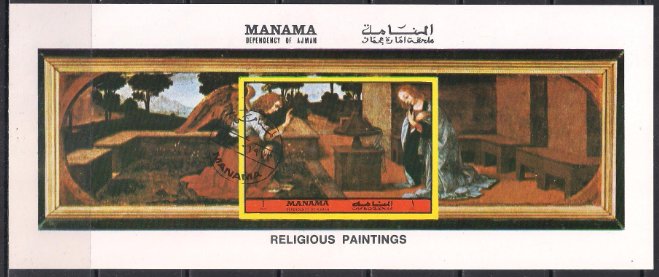 Манама (Аджман) 1972 год. Религиозная живопись. Гашеный блок без зубцов