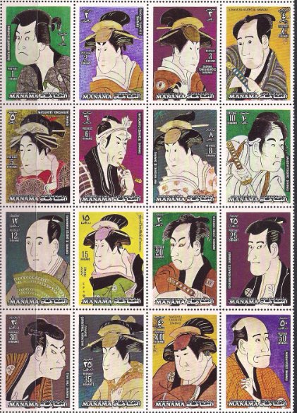 Манама (Аджман) 1972 год. Японская живопись. 16 марок 2.9м