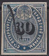 Марка городской управы С/Пб (30 копеек), погашена
