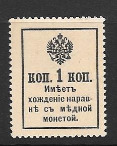 Марки-деньги. 1 копейка. Петр I. ГЕРБ, надпечатка. 1917 г