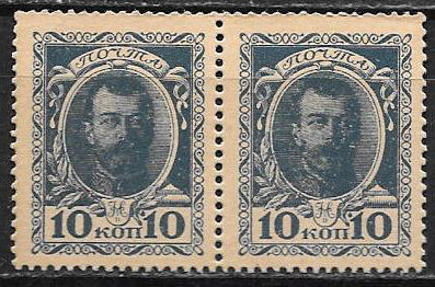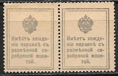 Марки-деньги. 10 копеек. Николай II, 1915 г сцепка горизонтал. 2 м. ГЕРБ