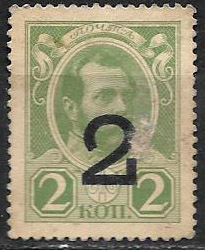 Марки-деньги. 2 копейки. Александр II. 1917 г. герб. ндп НАДПЕЧАТКА.... (ПЯТНО