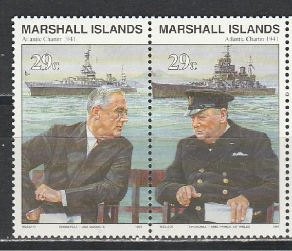 Маршалловы Острова 1991 год, История 2-й Мировой войны, Встреча Рузвельта с Черчилем, пара марок. (н23)