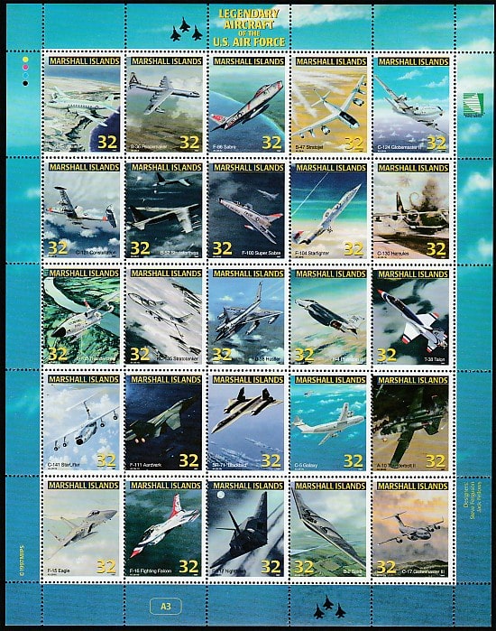 Маршалловы острова 1997 год. Самолёты ВВС США, лист (А3)