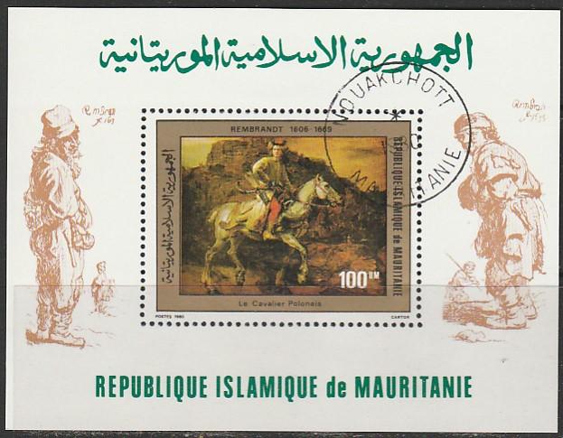 Мавритания 1980 год. Картины Рембрандта, гашёный блок