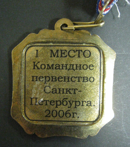 Медаль 1 место. Командное первенство Санкт-Петербурга. 2006 г.Медаль 1 место. Командное первенство Санкт-Петербурга. 2006 г.