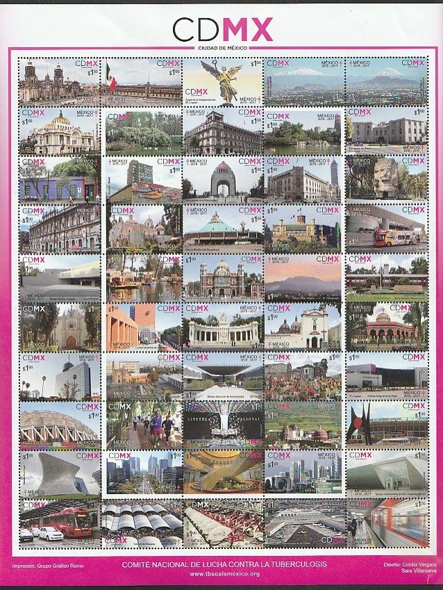 Мексика 2017 год. Виды города Мехико, 50 марок в листе (непочтовые, рекламные)