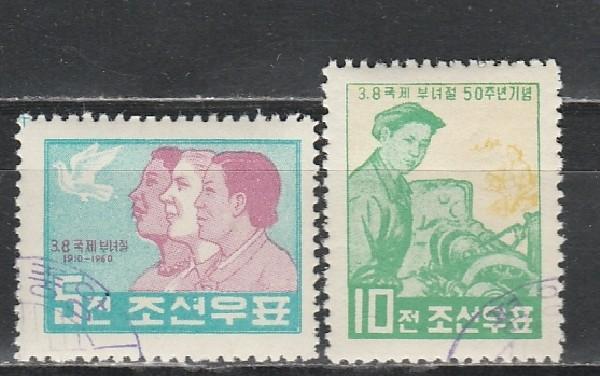 Международный Женский День, КНДР 1960 год, 2 гашеные марки .