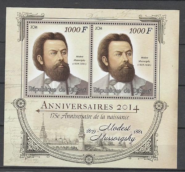 Модест Мусоргский, Джибути 2014 г, блок