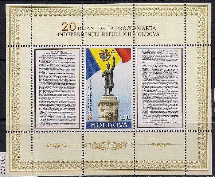 Молдавия 2011 год. 50 лет независимости Молдавии. 1 блок (230.430)