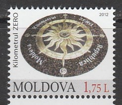 Молдавия 2012 год. Знак "Нулевой километр" у Главпочтамта в Кишинёве, 1 марка.