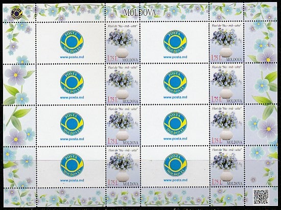 Молдавия 2013 год. Поздравительные марки. Ваза с букетом. Незабудки, малый лист (сувенирная обложка)