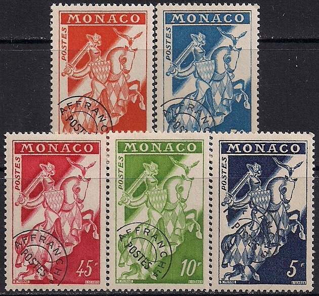 Монако 1957 год. Символический рыцарь. Княжеская печать. 5 марок (15,30,45,10,5)