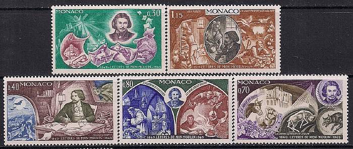 Монако 1969 год. 100 лет со дня опубликования сборника Альфонса Доде "Письма с мельницы". 5 марок
