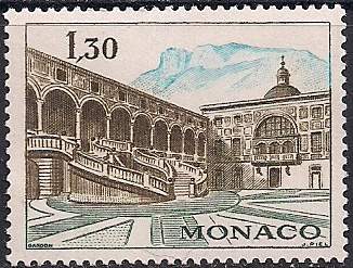 Монако 1970 год. Княжеский дворец. Парадный двор. 1 марка