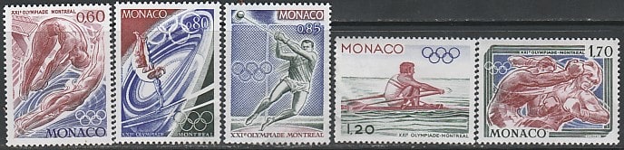 Монако 1976 год. Зимние Олимпийские игры, Монреаль, Канада, 5 марок