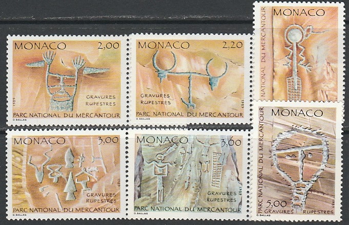 Монако 1989 год. Наскальные рисунки в Национальном парке Меркантур, 6 марок
