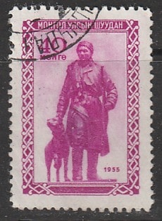 Монголия 1955 год. Монгол с собакой, 1 марка из серии (гашёная)