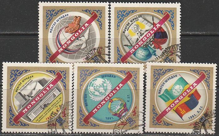 Монголия 1962 год. Монгольская Народная Республика в ООН, 5 гашёных марок