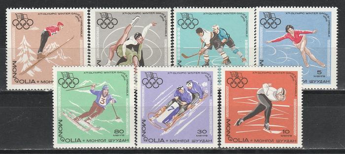 Монголия 1967 г, Олимпиада в Гренобле, 7 марок с наклейкой