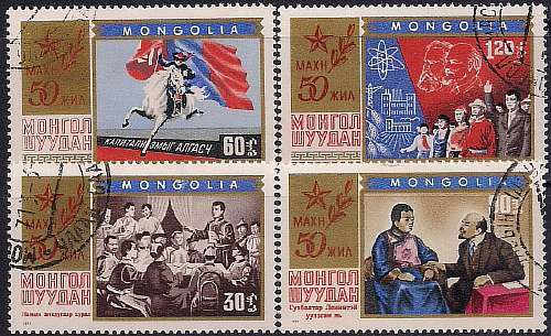 Монголия 1971 год. 50 лет монгольской народной революции. 4 гашеные марки