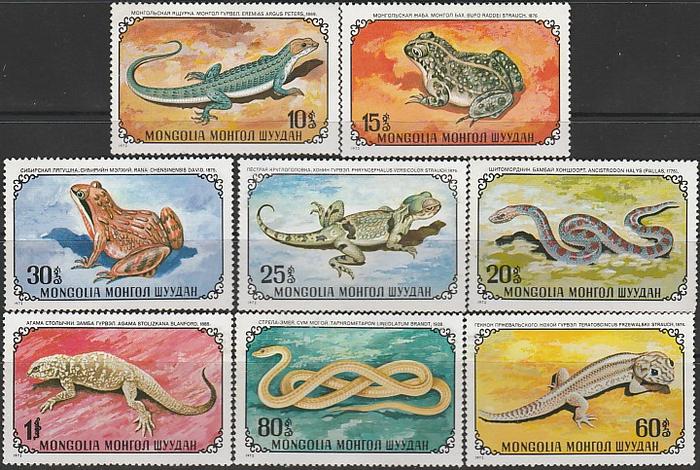 Монголия 1972 год. Земноводные и рептилии, 8 марок
