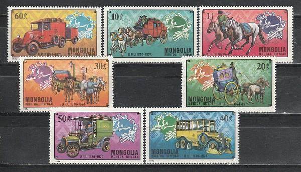 Монголия 1974 г, 100 лет UPU, 7 марок