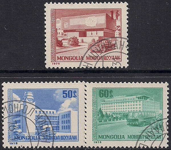 Монголия 1975 год. Стандарт. Здания. 3 гашёные марки