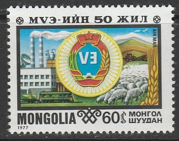 Монголия 1977 год. Экономика. Профсоюзная эмблема, 1 марка (наклейка)