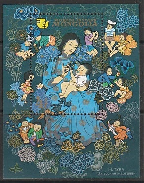 Монголия 1981 год. Десятилетие женщины, блок (наклейка)