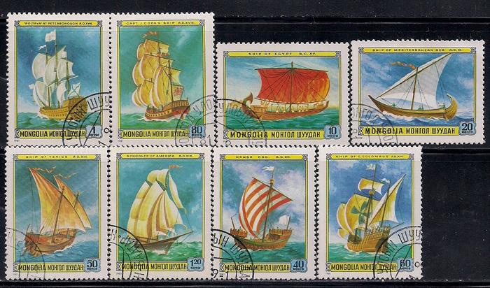 Монголия 1981 год. Парусники. 8 гашеных марок