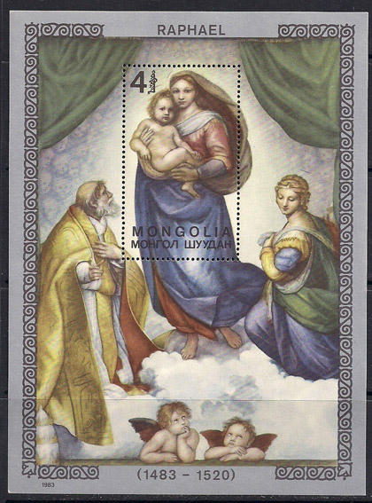 Монголия 1983 год. "Сикстинская Мадонна". Рафаэль, блок