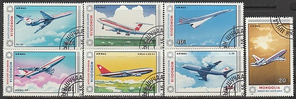 Монголия 1984 год. Пассажирские самолёты, 7 марок (гашёные)