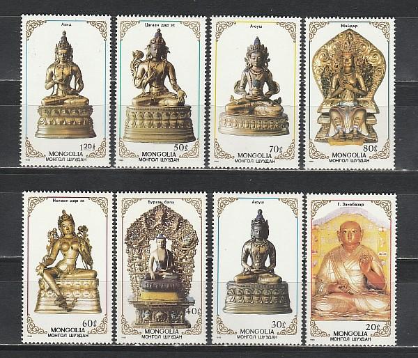 Монголия 1988 год. Буддийские боги, статуэтки. 8 марок.