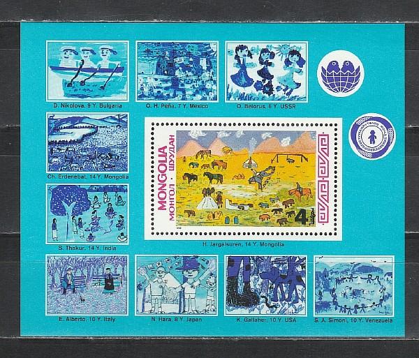 Монголия 1988 год. Детский Фонд. Детские рисунки. Блок