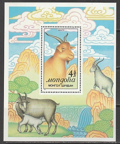 Монголия 1988 год. Козы, блок