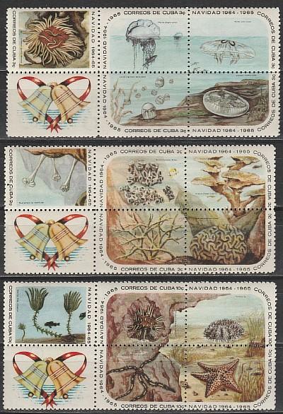 Морская Фауна, Куба 1964 год, 15 марок 3 сцепки