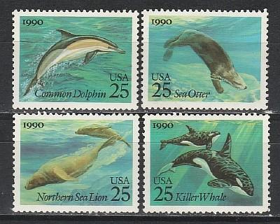 Морская Фауна, США 1990 год, 4 марки. совместный выпуск