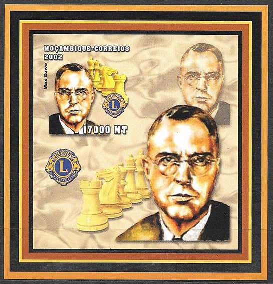Мозамбик 2002 год. Шахматы. Макс Эйве, блок