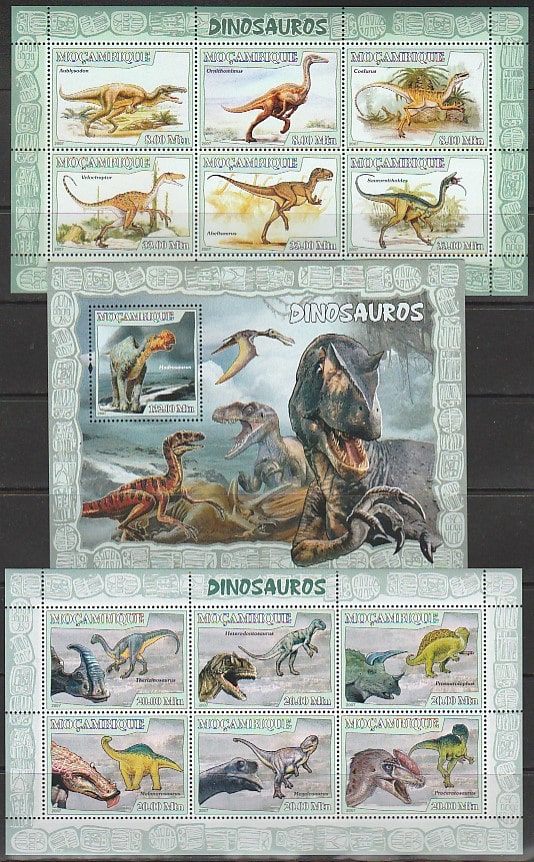 Мозамбик 2007 год. Динозавры, 2 малых листа + блок.