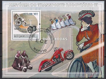 Мозамбик 2009 год. История транспорта. Гашеный блок Сувенирный выпуск