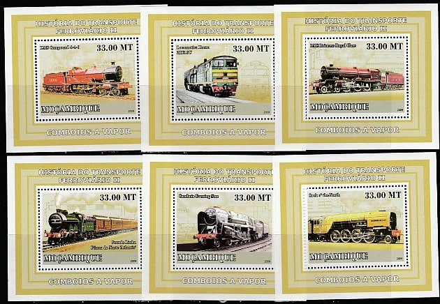 Мозамбик 2009 год. История железнодорожного транспорта - II, 6 люксблоков
