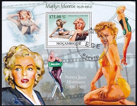 Мозамбик 2009 год. М. Монро, блок (гашёный)