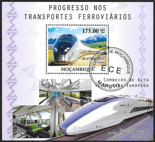 Мозамбик, 2010 год. Скоростные поезда. 1 гашёный блок