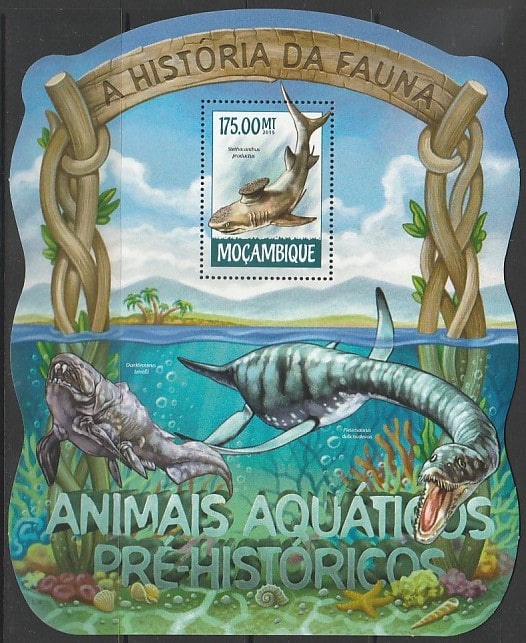 Мозамбик 2015 год. Морские динозавры, блок.