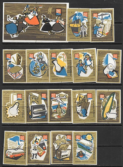 Набор иностранных этикеток. 20 лет Латвийской ССР. 17 шт. 1960 год