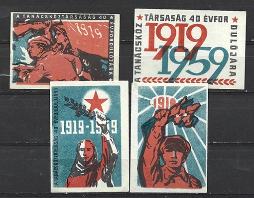 Набор иностранных этикеток. 40 лет революции. Венгрия. 1959 год. 4 шт