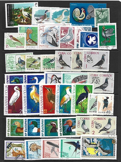 Набор иностранных гашеных марок, птицы, 40 марок