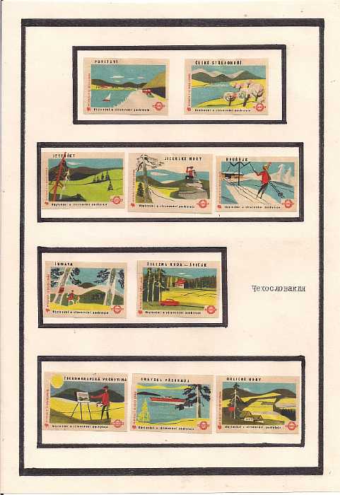 Набор иностранных спичечных этикеток. Чехословакия. Пейзажи.10 штук. НАКЛЕЕНЫ